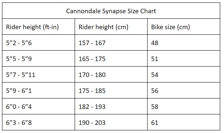 The spec on the Synapse 1 is precisely as mentioned below except for the tyres, which we change after each tour. The tyres we use will either be 28mm or 32mm and be Gatorskins or very similar.